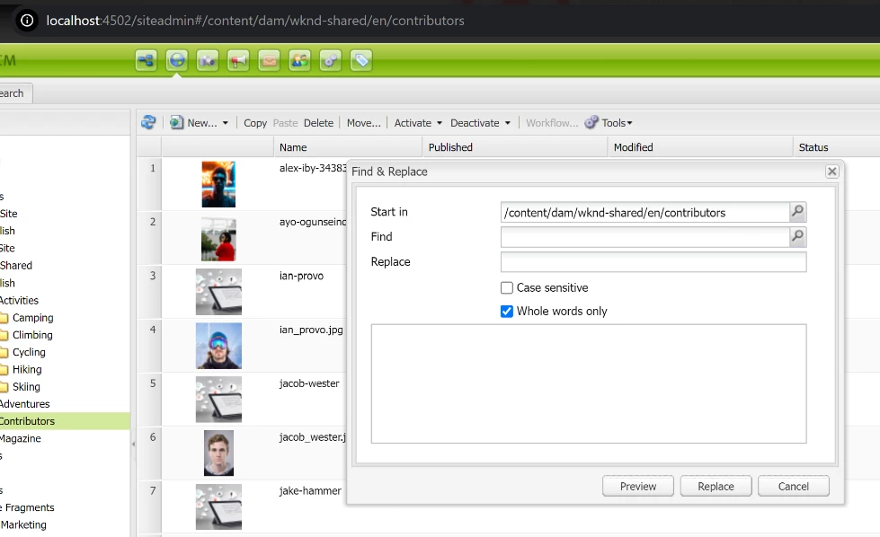 Implementation of global find and replace functionality on TouchUI (AEMasCS)