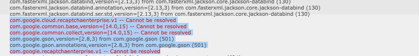Importing 3rd Party Java Maven Dependency, com.google.cloud, Google ReCaptcha Enterprise, google-cloud-recaptchaenterprise Errors in Bundle in 2023