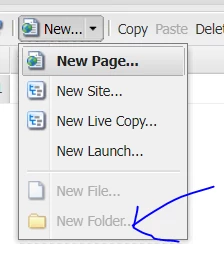 So it needs to show NEW FOLDER for website from siteadmin to content authors.We see option to add folder to websites crxde i.e ocalhost:4502//crx/de/index.jsp#/content/portal/en/ but disabled in siteadmin. How to enable this button.
