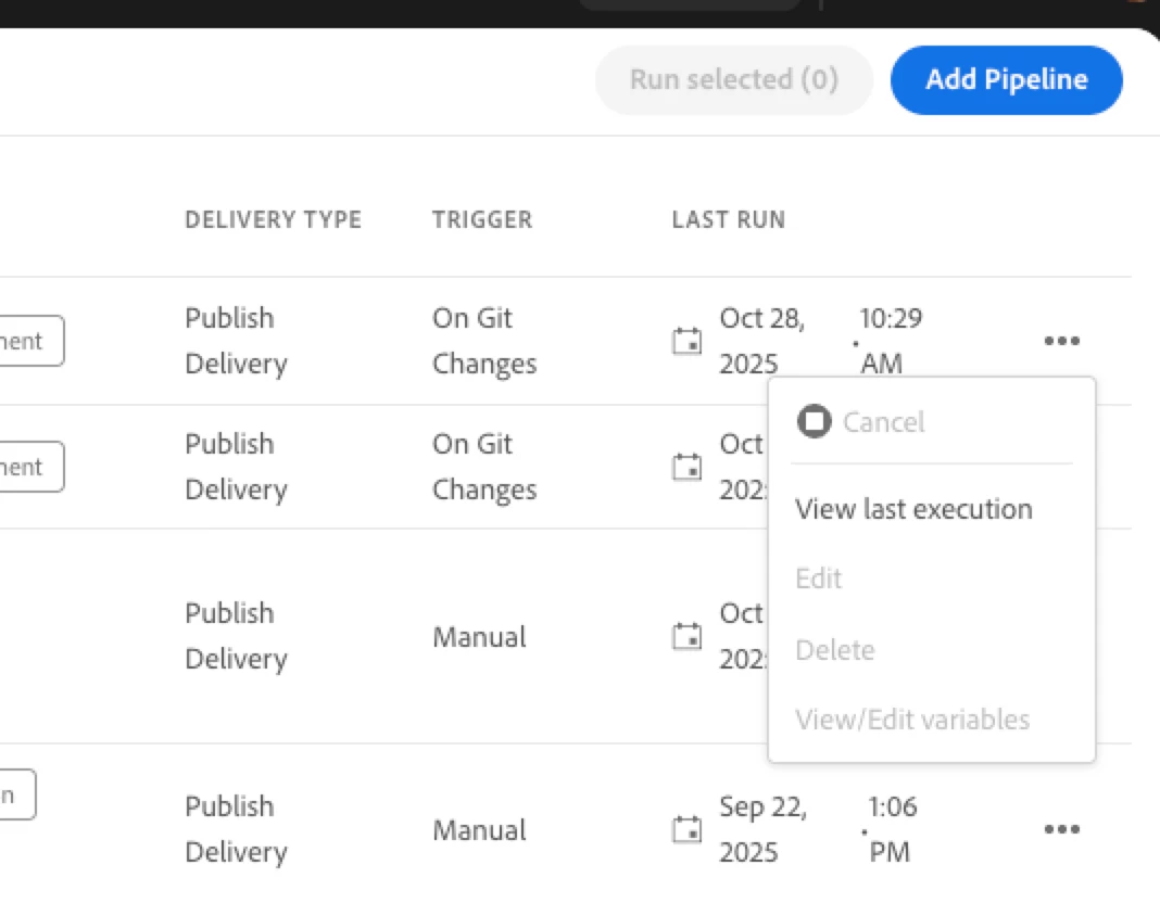 | Current/Experienced Behavior: | In CloudManager when the execution is running, the label in menu item says "View last execution" - this is semantically wrong/confusing. |