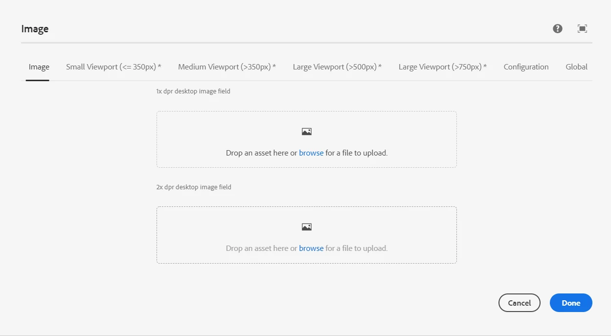 How to add image from local filesystem to a component dialog? The drag and drop feature is working but cannot browse a file to upload