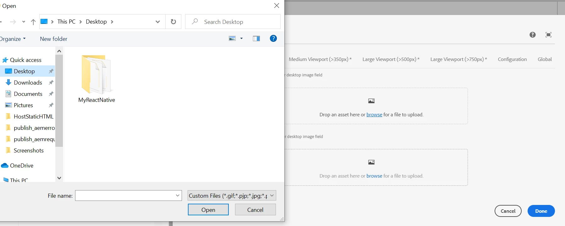 Include Image from local system to component dialog