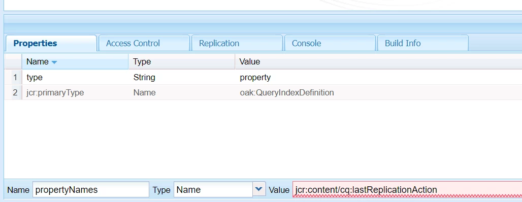 Index jcr:content/cq:lastReplicationAction - Not a valid JCR Name