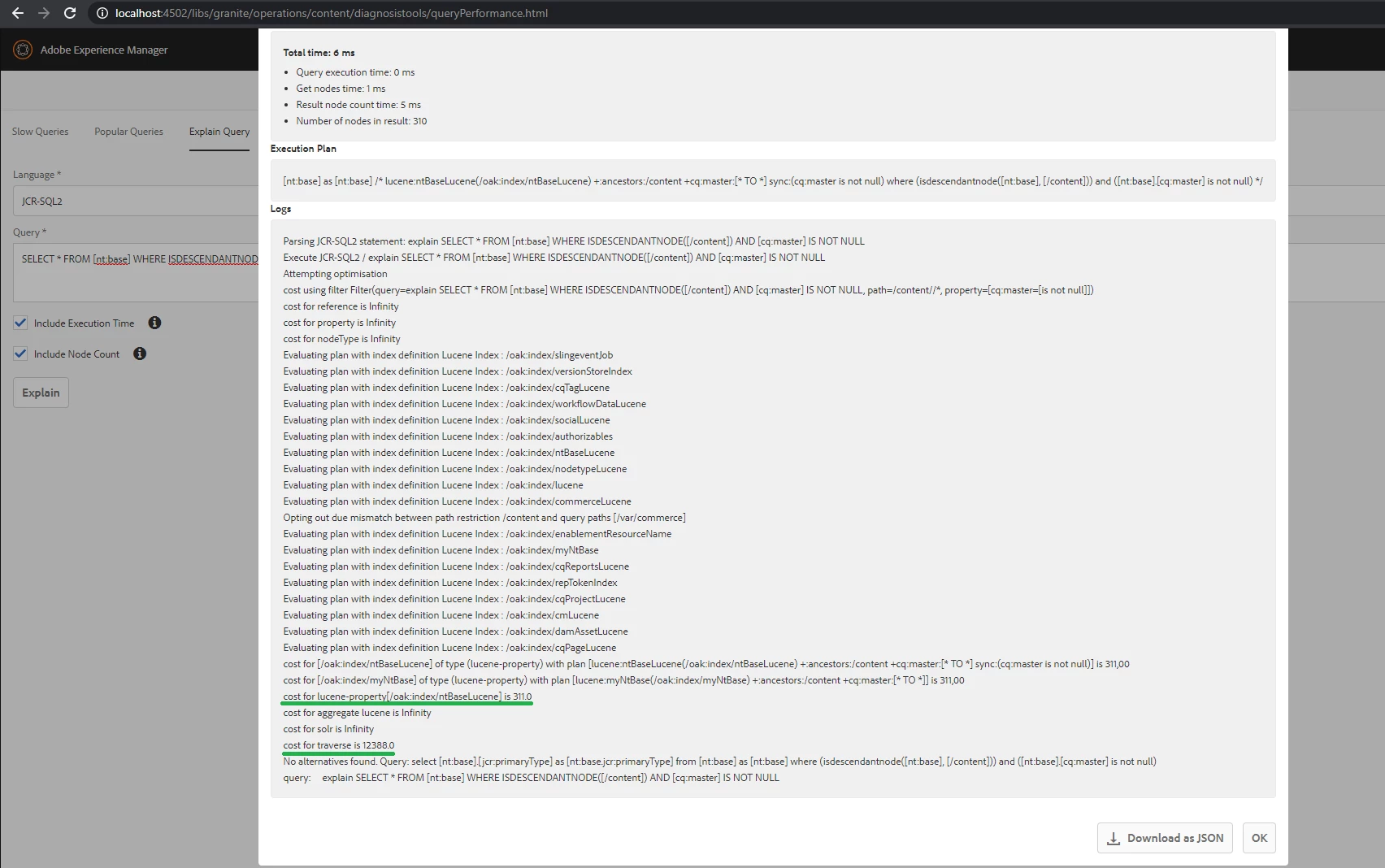 Although we have indexes (property,lucene ) defined for most of the queries, few of the indexes are going in traversal