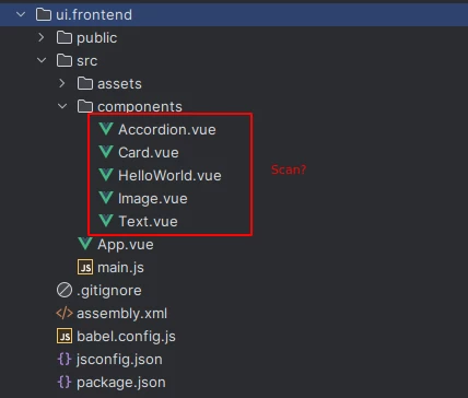 Output: Initially page is loaded with HTL code, just after that all the content is replaced with the vue App component. which actually makes sense since it initiates its component.