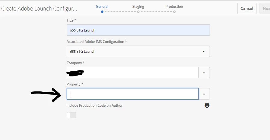 And when I try to create a new Launch configuration (screenshot below), I choose the Title, the Associated Adobe IMS Config and Company are pre-loaded.