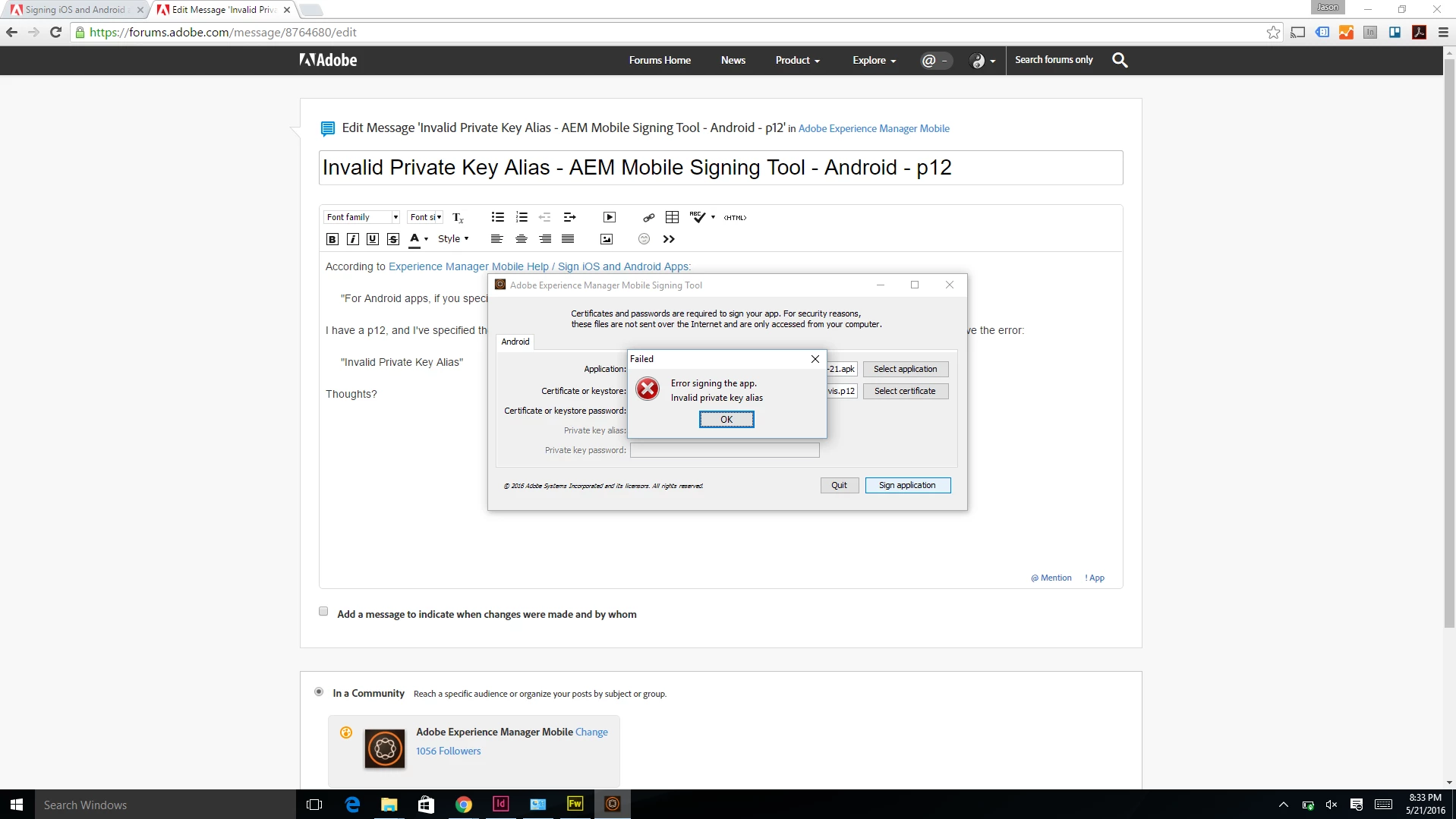 Invalid Private Key Alias - AEM Mobile Signing Tool - Android - p12
