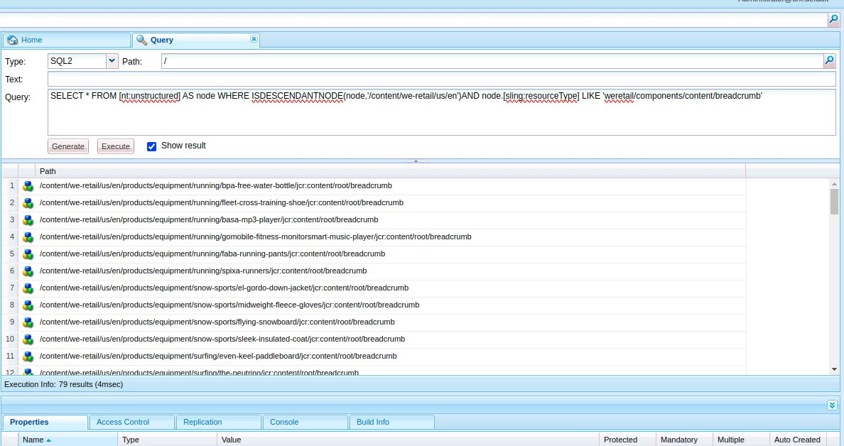 I tried String queryString = "SELECT * FROM [nt:unstructured] AS node WHERE ISDESCENDANTNODE(node," +path+")"+ "AND [sling:resourceType] = 'apps/components/componentName"; also