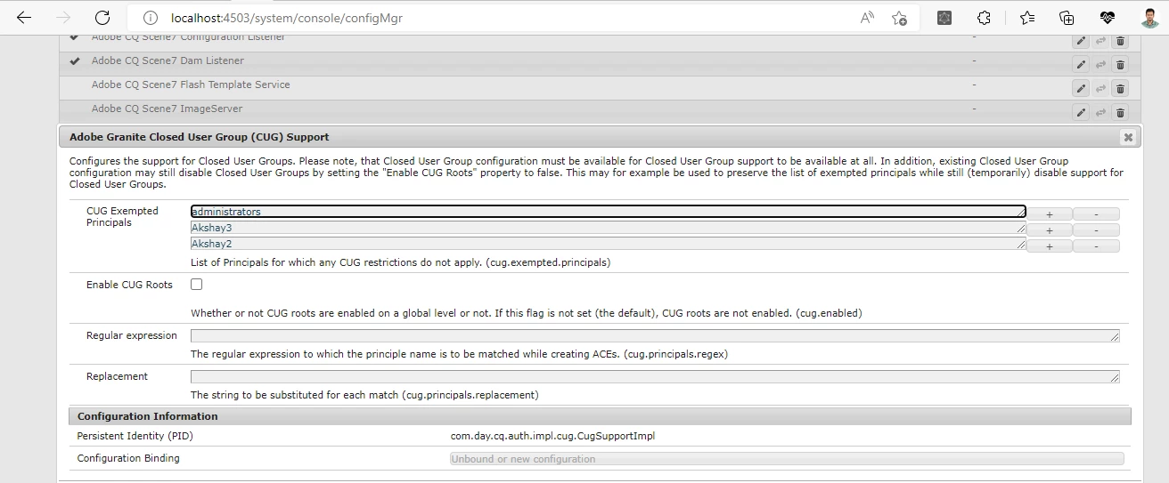 Check Apache Jackrabbit Oak CUG Exclude List (OSGi componnet uses below service,
