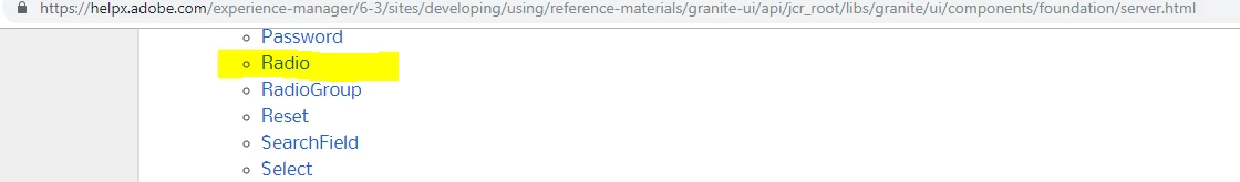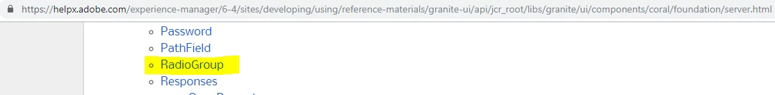 Can any one suggest where is the radio component properties will be belonging to when am upgrading the components dialog to AEM 6.4 .?