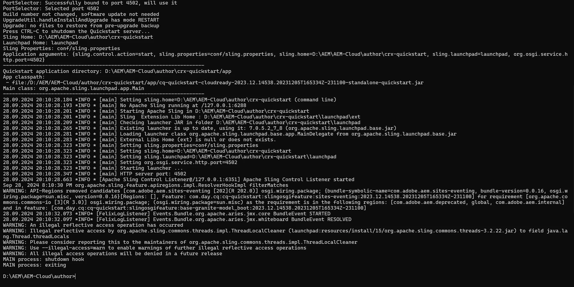 I’m currently trying to set up my local environment using the AEM SDK version aem-sdk-2023.12 for practice purposes.