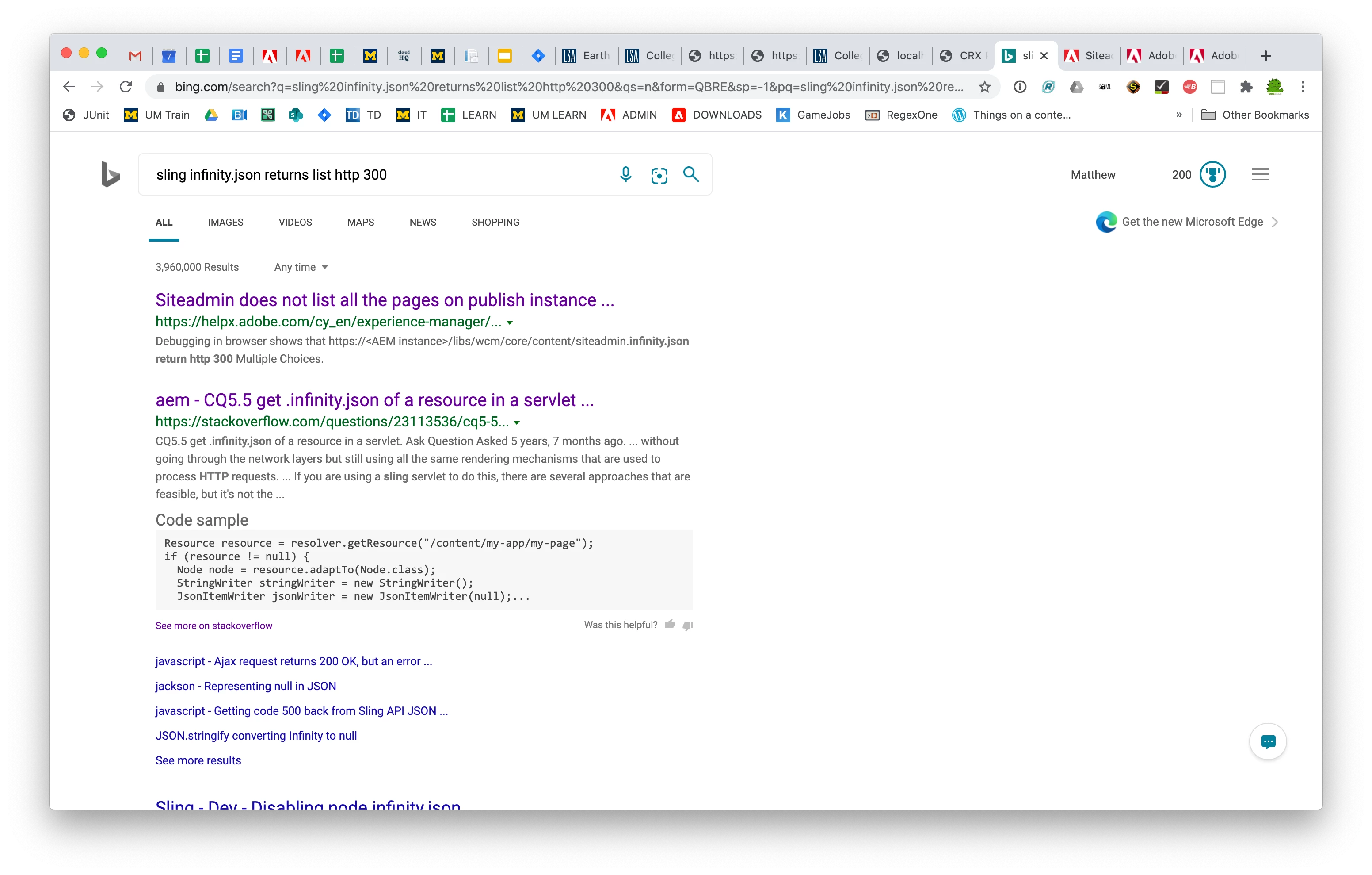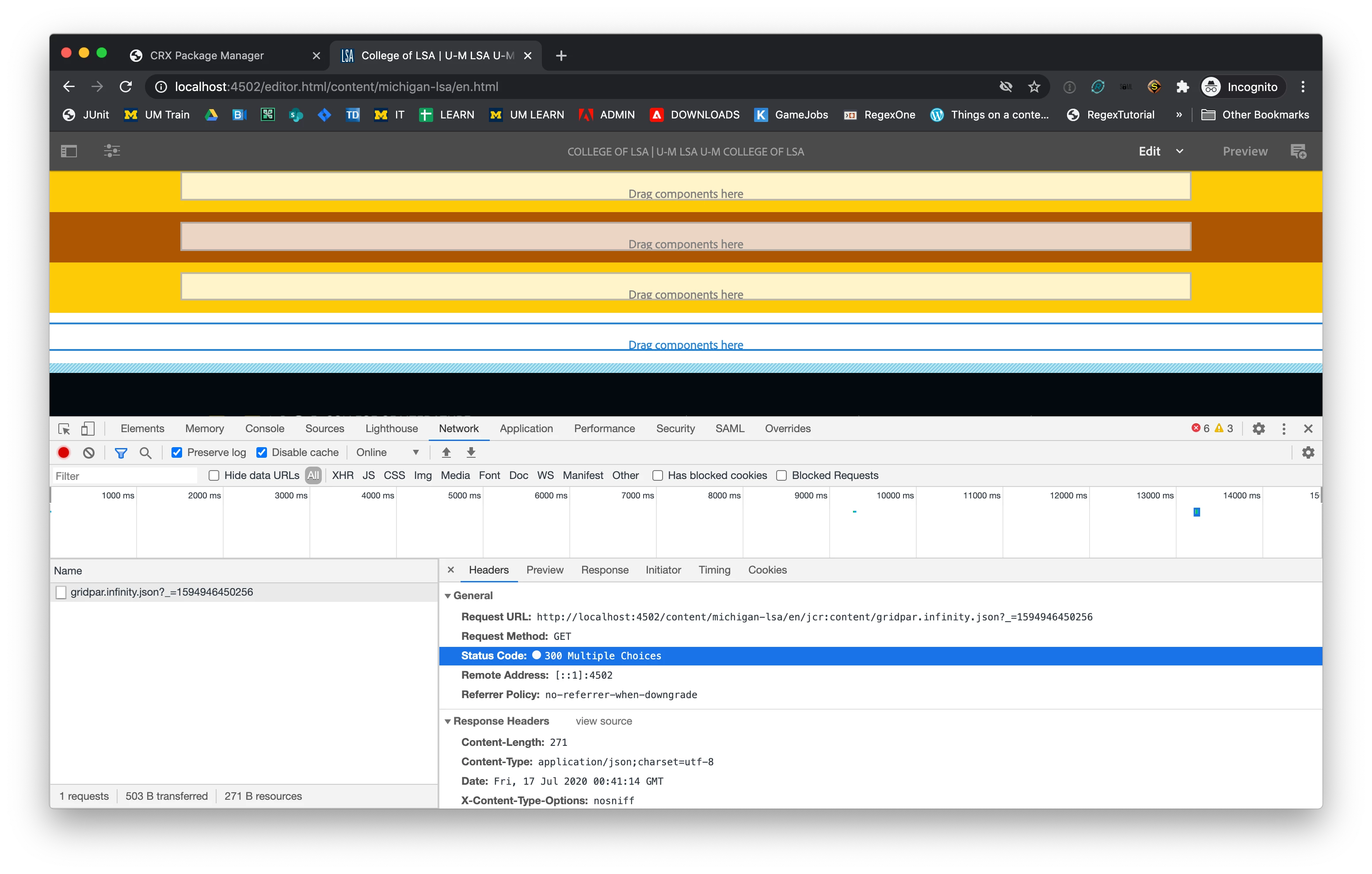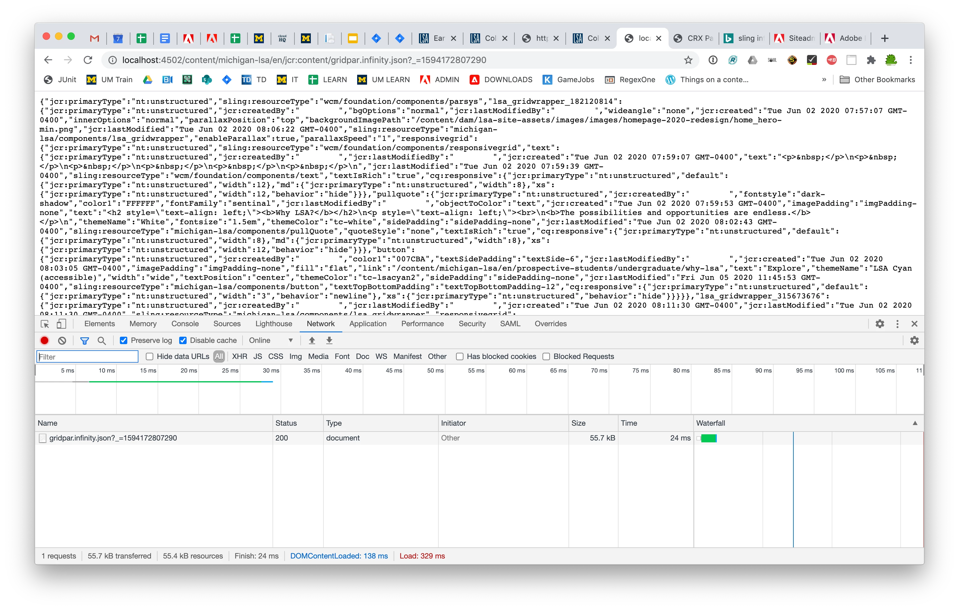 When I hit the below url http://localhost:4502/content/geometrixx-outdoors/en.infinity.json, I am getting the following response