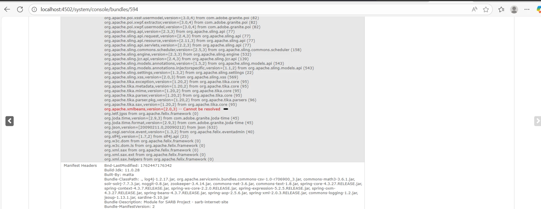 org.apache.xmlbeans,version=[2.0,3) -- Cannot be resolved