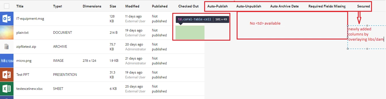 .Issues with custom columns in listview for AEM 6.2 The above changes work on site.html but for the products.html no changes work. Seems like it is using different template/path which I am unable to find.