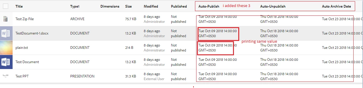 Issues with custom columns in listview for AEM 6.3 on /aem/products.html/