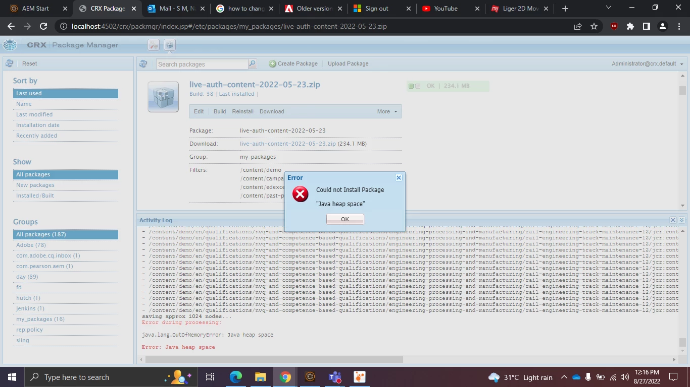Java Heap Space error while installing the package in CRX Package Manager