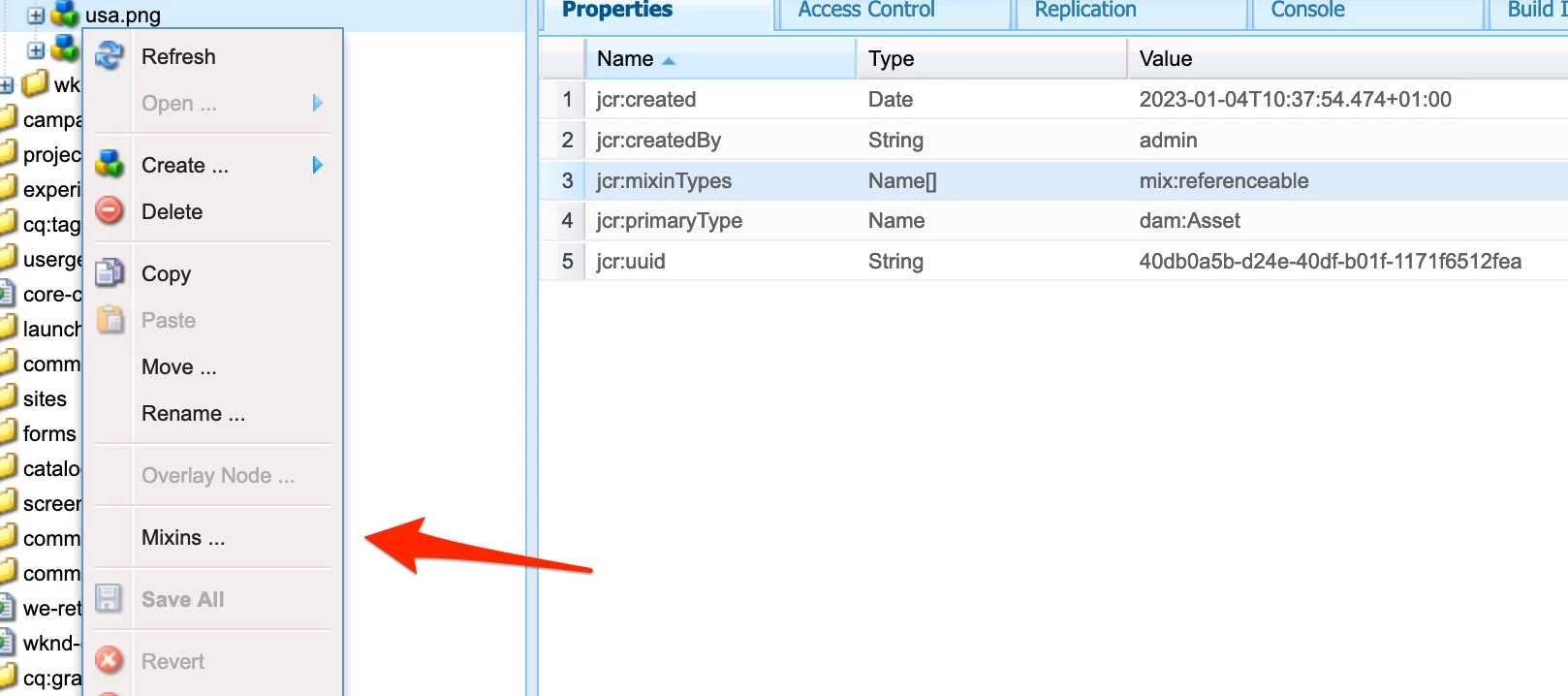 jcr:mixin is not editable