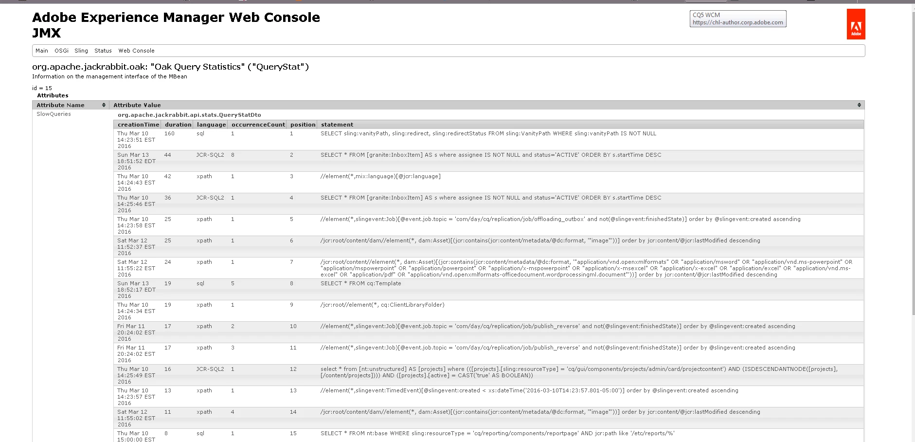 /system/console/jmx/com.adobe.granite%3Atype%3DQueryStat