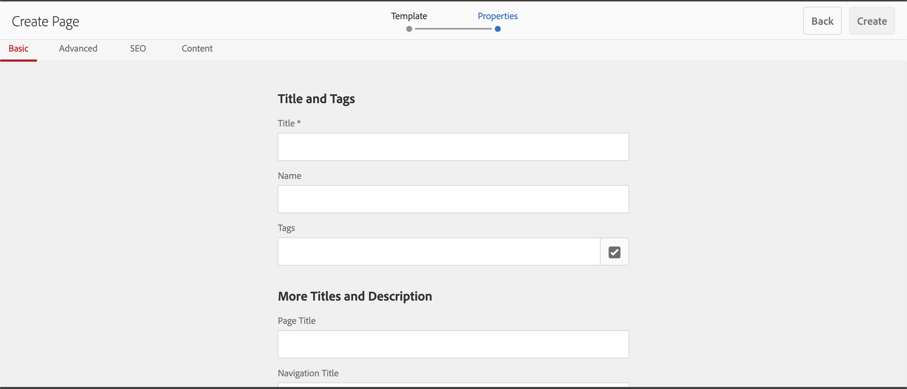 JSP for page creation wizard