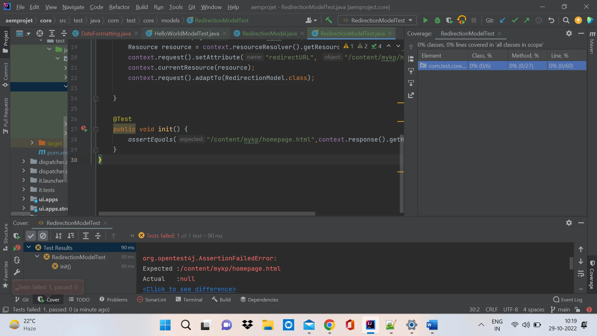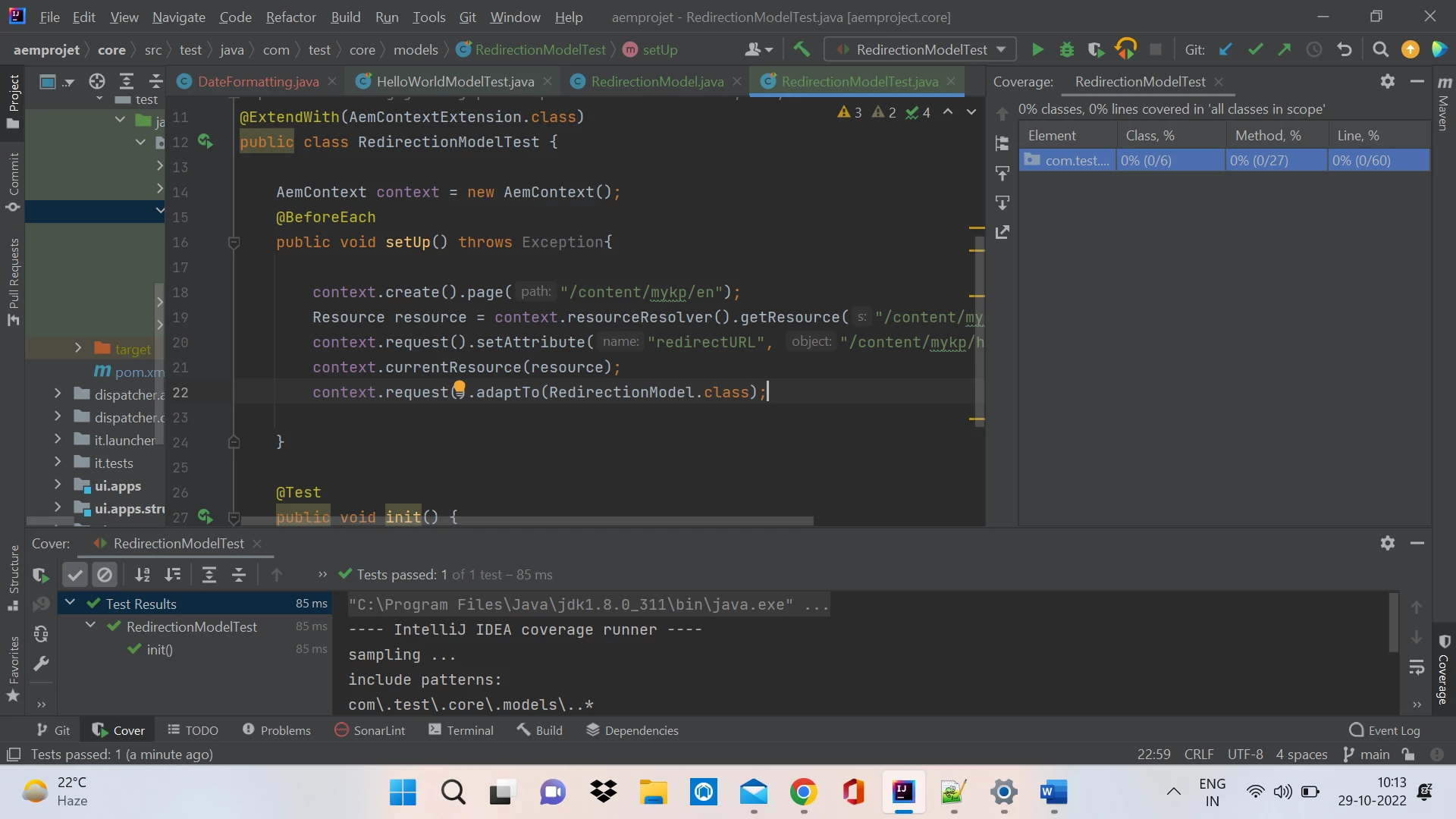 after run Test with code converge it is showing me always 0% in IntelliJ.