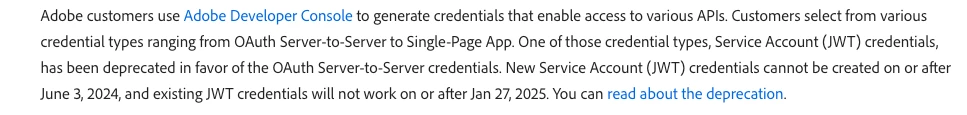 Since Adobe is deprecating the Service Account (JWT) credentials in favor of the OAuth Server-to-Server credentials for all integrations in all AEM authoring envs, does this also impact code integrations where we have used Adobe Query Builder API - https://experienceleague.adobe.com/en/docs/experience-manager-cloud-service/content/implementing/developing/full-stack/search/query-builder-api for programmatically searching through assets in our Adobe Authoring env since currently in order to leverage this API integration , we have bene using JWT credentials but does those creds also stop working in Jan 2025 and we would need to switch to oauth ?