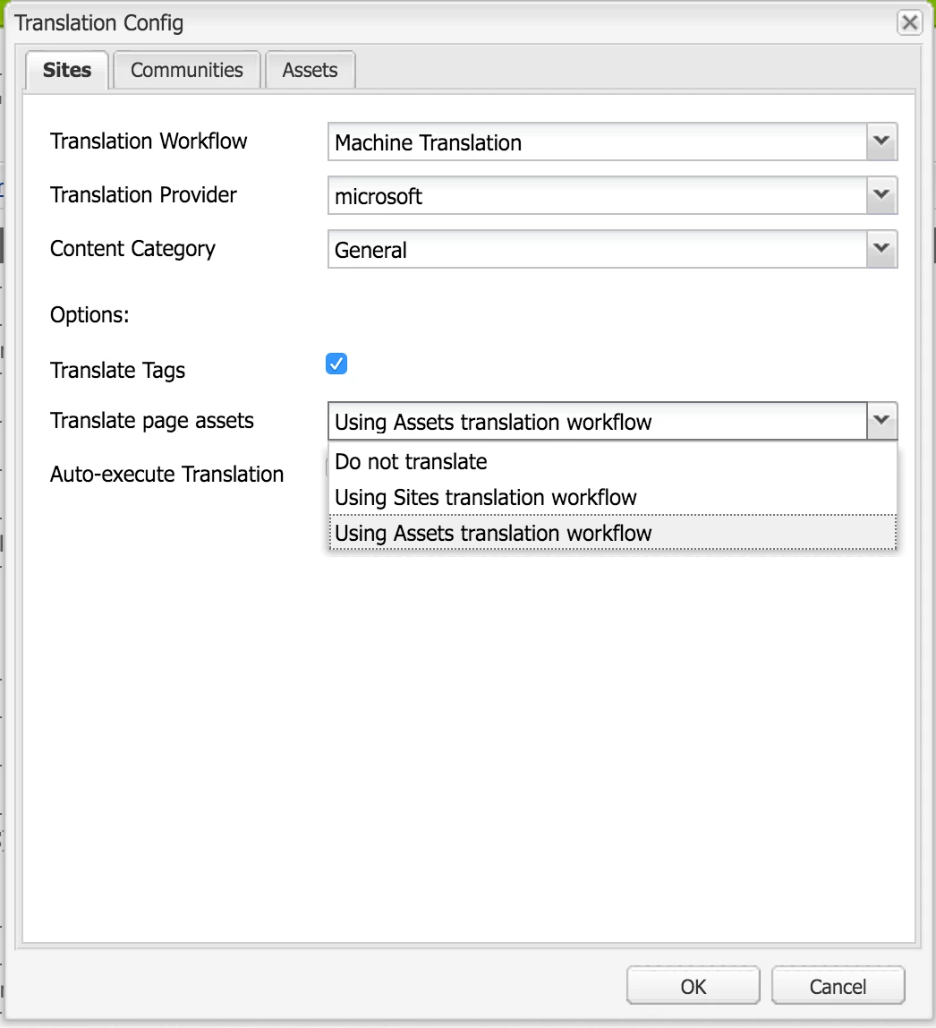 I've been trying to translate a page along with the assets referenced in it. In the cloud service configuration for the translation framework there are three choices: