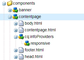 AS you can see from the contentpage structure, I have cq:infoProviders which has a responsive node.