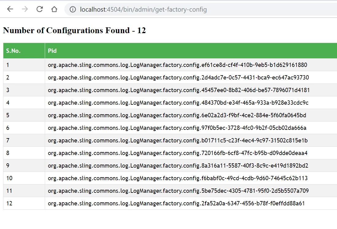 So now I want a list of all these configs made from above OSGi config.