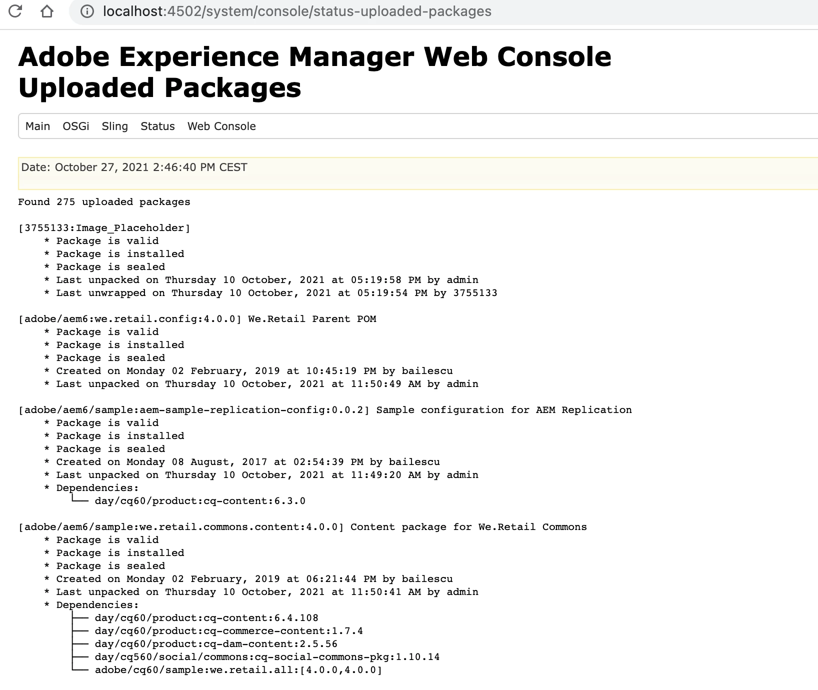 http://<IP>:<PORT>/system/console/status-uploaded-packages
