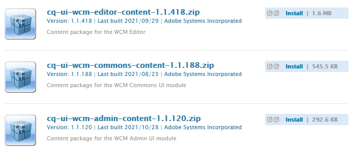 When I tried manually installing cq-ui-wcm-editor-content-1.1.418.zip, it threw an exception: