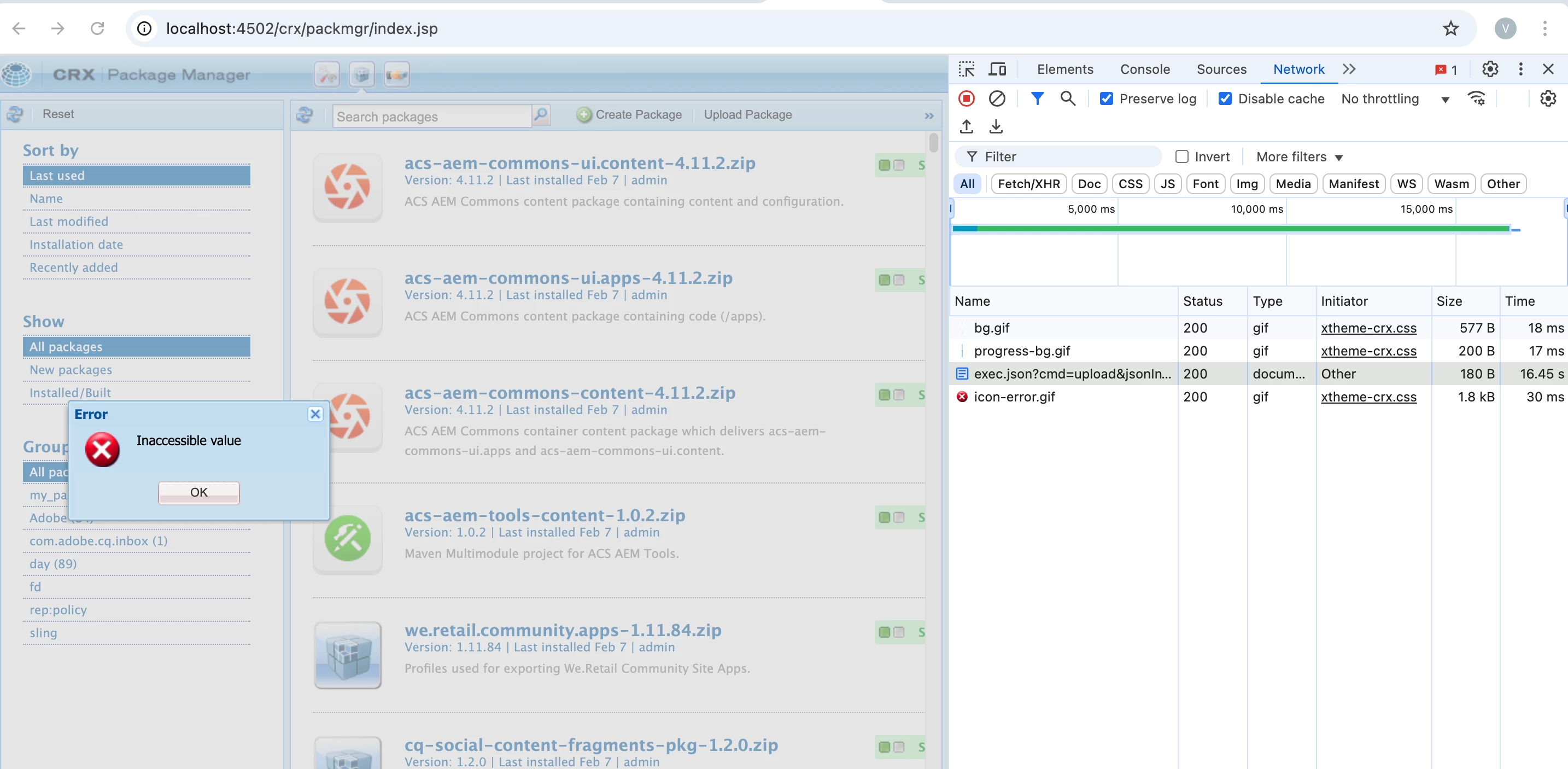I kindly request you please help me out here. On uploading a SP 6.5.19 from packagemanager gives the error as Inaccessible Value. I have tried in multiple browsers. There is no error shown in the error log nor in the network traffic.