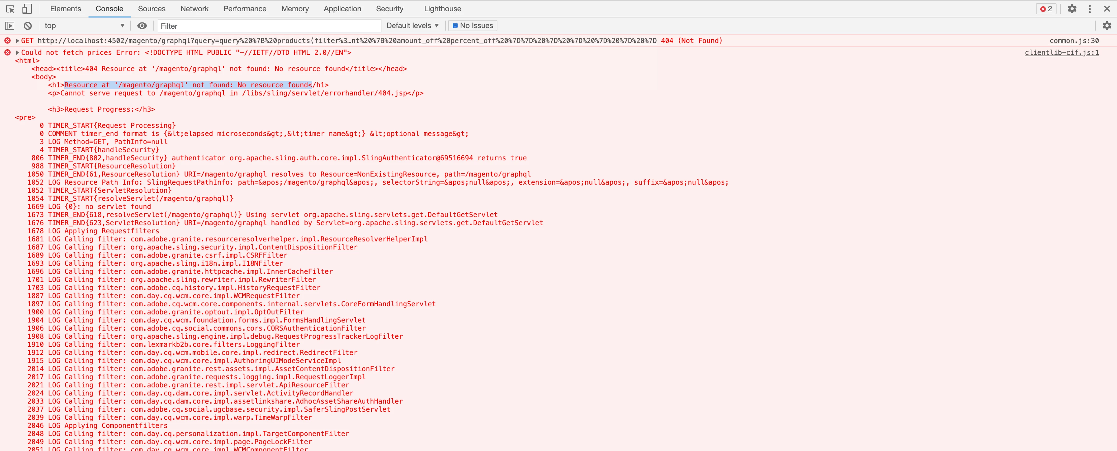 2. Getting error in console :Resource at '/magento/graphql' not found: No resource found.