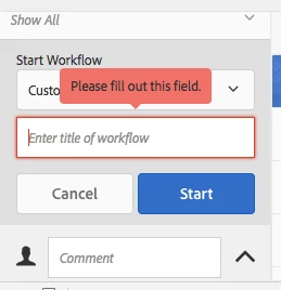 You need to write custom validation to fix this http://localhost:4502/libs/cq/gui/components/coral/common/admin/timeline/events/workflow/clientlibs/workflow.js