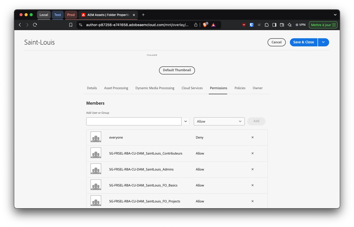 | Use-case: | A contributor need to add or revoke access for some users groups on folders on both author and publish |