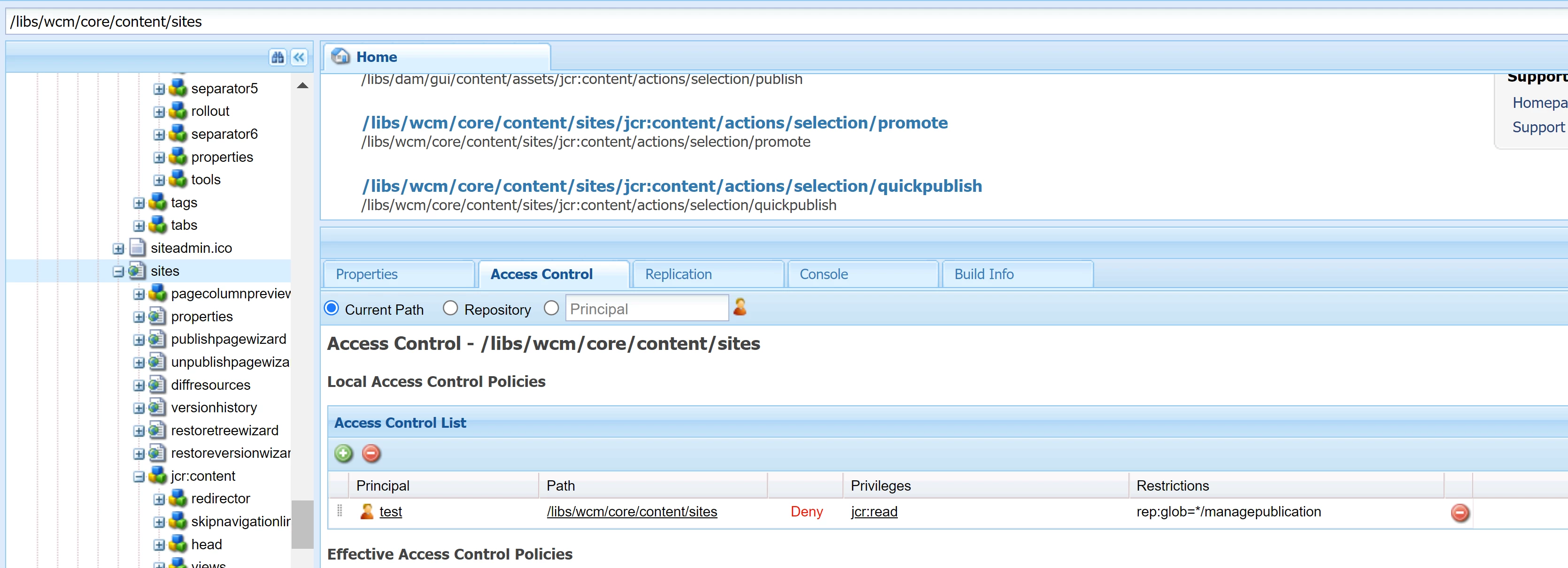 Does anyone know how to make Manage Publication working based upon crx:replicate? I tried some permissions in workflow-users individually, and it will also make Manage Publication visible even if I don't add crx:replicate privilege. It looks like a bug for me.