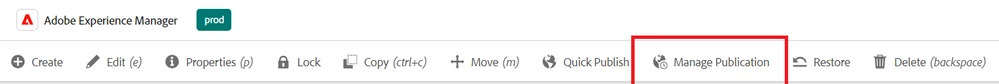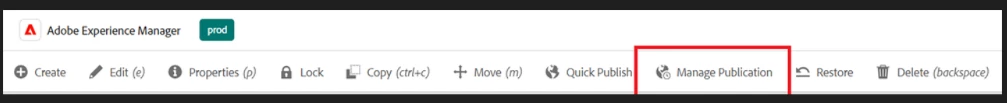 Manage publication Wizard is not visible in AEM Cloud