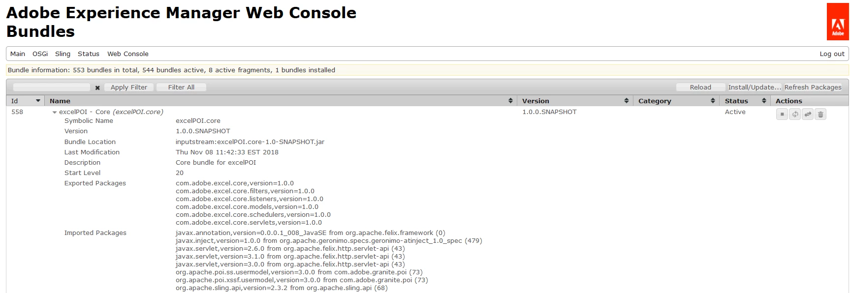 I have created a simple maven project which queries AEM 6.4 repository and sends the mail with query results in excel attachment. I am using Apache POI Api to create excel. To add the POI jar, I used depfinder(/system/console/depfinder) and got the below dependency details.