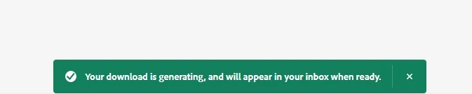 Something that has been confusing our users is a message they receive when downloading assets in bulk. When they hit "Download," they see a green message that says, "Your download is generating, and will appear in your inbox when ready." Our users see the word "inbox" and think, "this is going into my Outlook or email inbox." So they sit and wait around for an email that never comes. Little do they know, until they ask me, that the "inbox" is different.