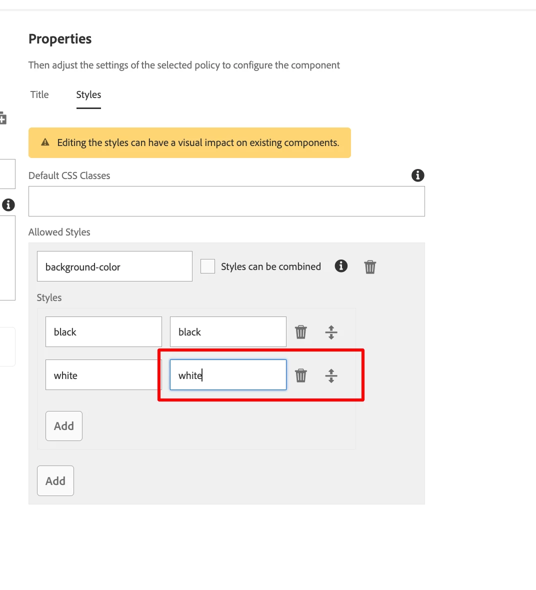 I'm having an issue with the style selection list for the component Text(v2)as isn't rendering the "value" attribute of each option, making it unselectable.