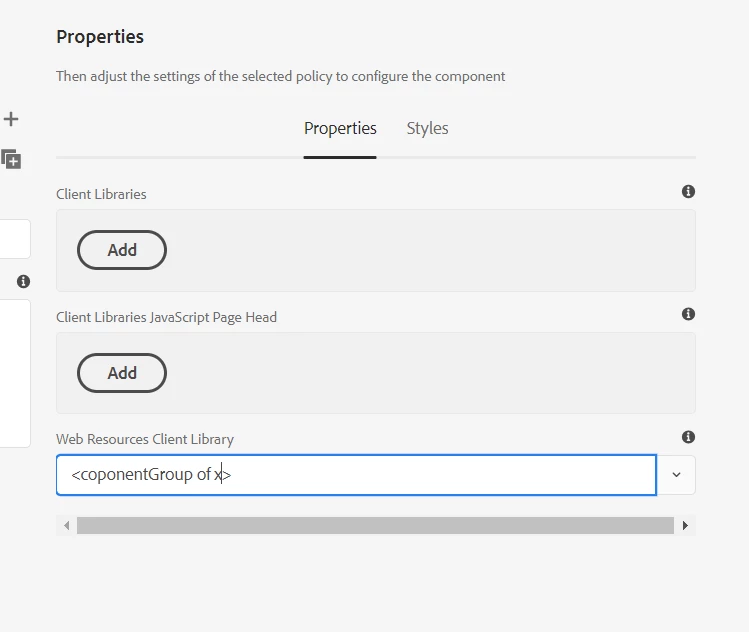 5. Navigated to clientlibs folder and added my component x in the embed.