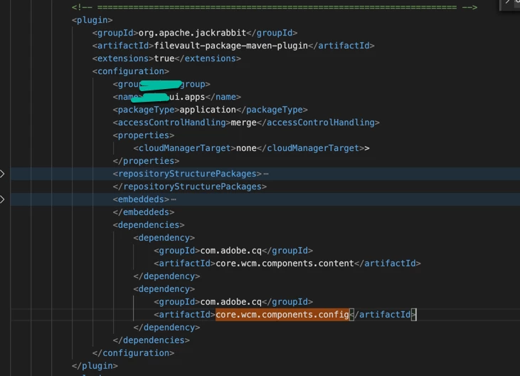Missing dependencies abc:abc.ui.apps required dependencies missing: [adobe/cq60:core.wcm.components.content:2.7.0, adobe/cq60:core.wcm.components.config:2.7.0]