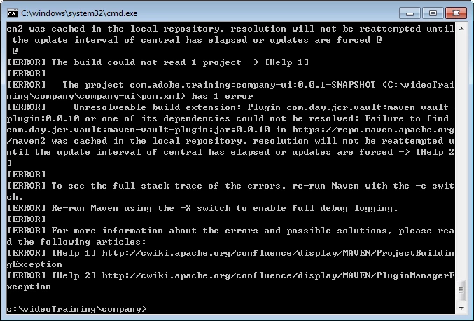I met with an exception (Screenshot 1) while install Company maven project according to video – installing and configuring Eclipse (Screenshot 2). I also downloaded CodeSnippets package from