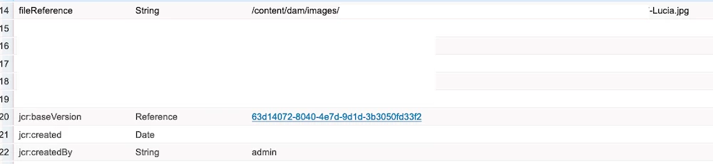 EDIT1: here's a sample of the fileReference when it's showing correctly in CRX/DE