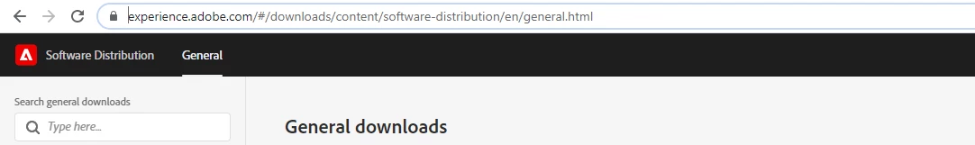 Only "General" tab is presented and "Adobe Experience Manager", "Adobe Experience Manager as a Cloud Service", "Adobe Campaign" are missing.