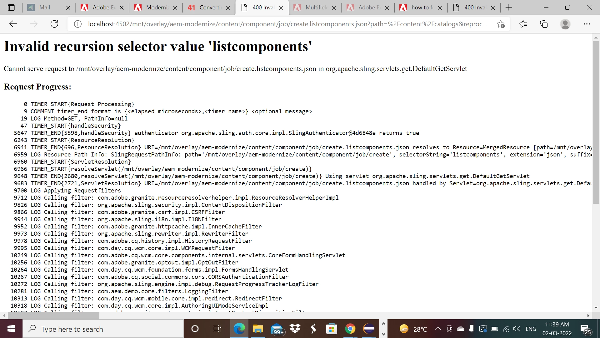 Invalid recursion selector value 'listcomponents'
