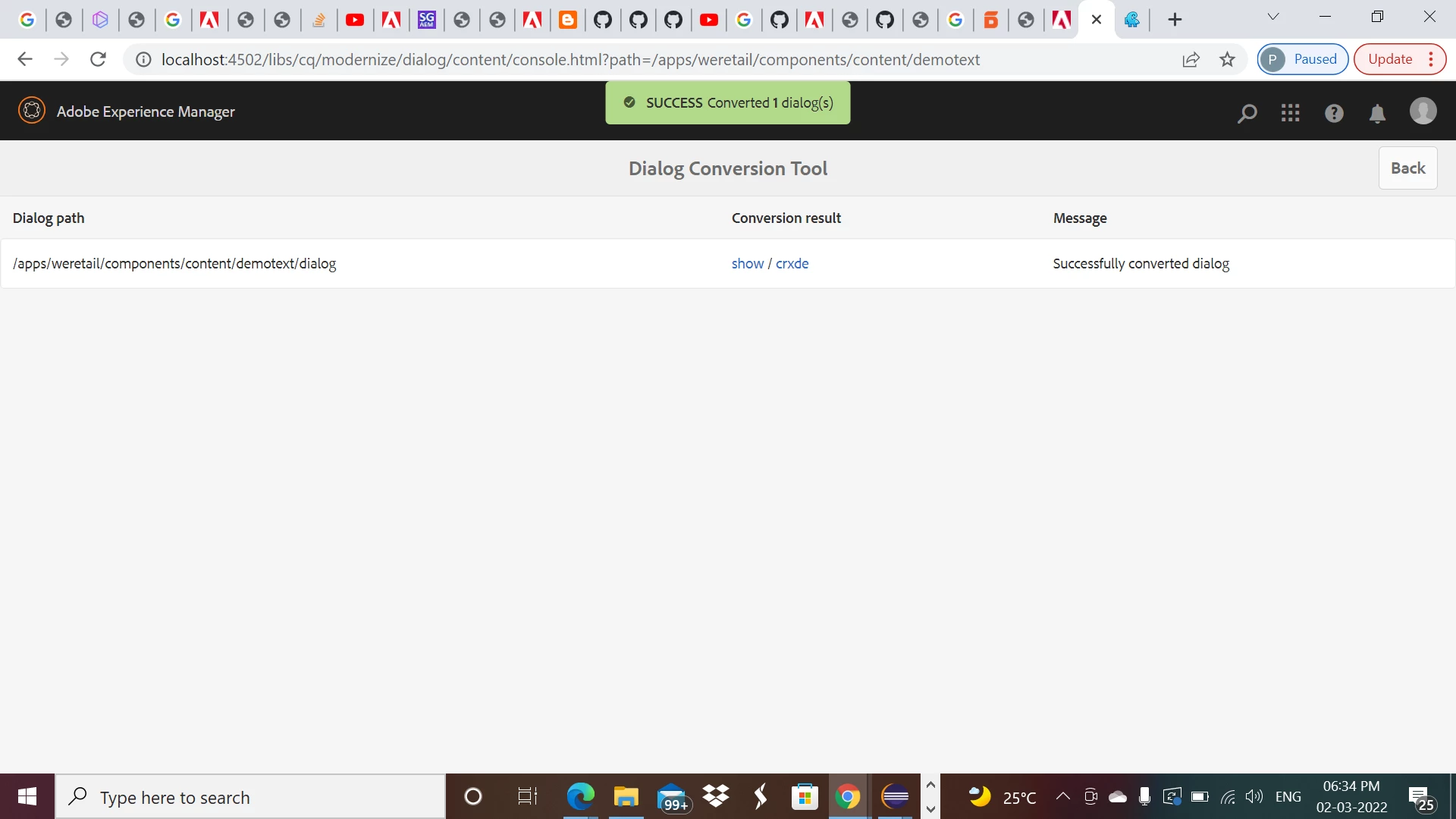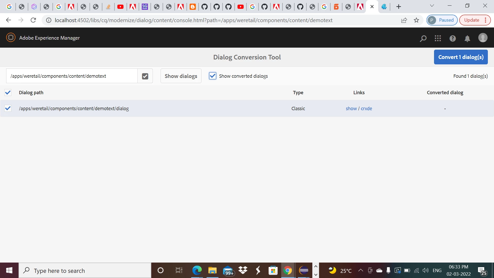 has anyone use aem modernization tools for dialog conversion