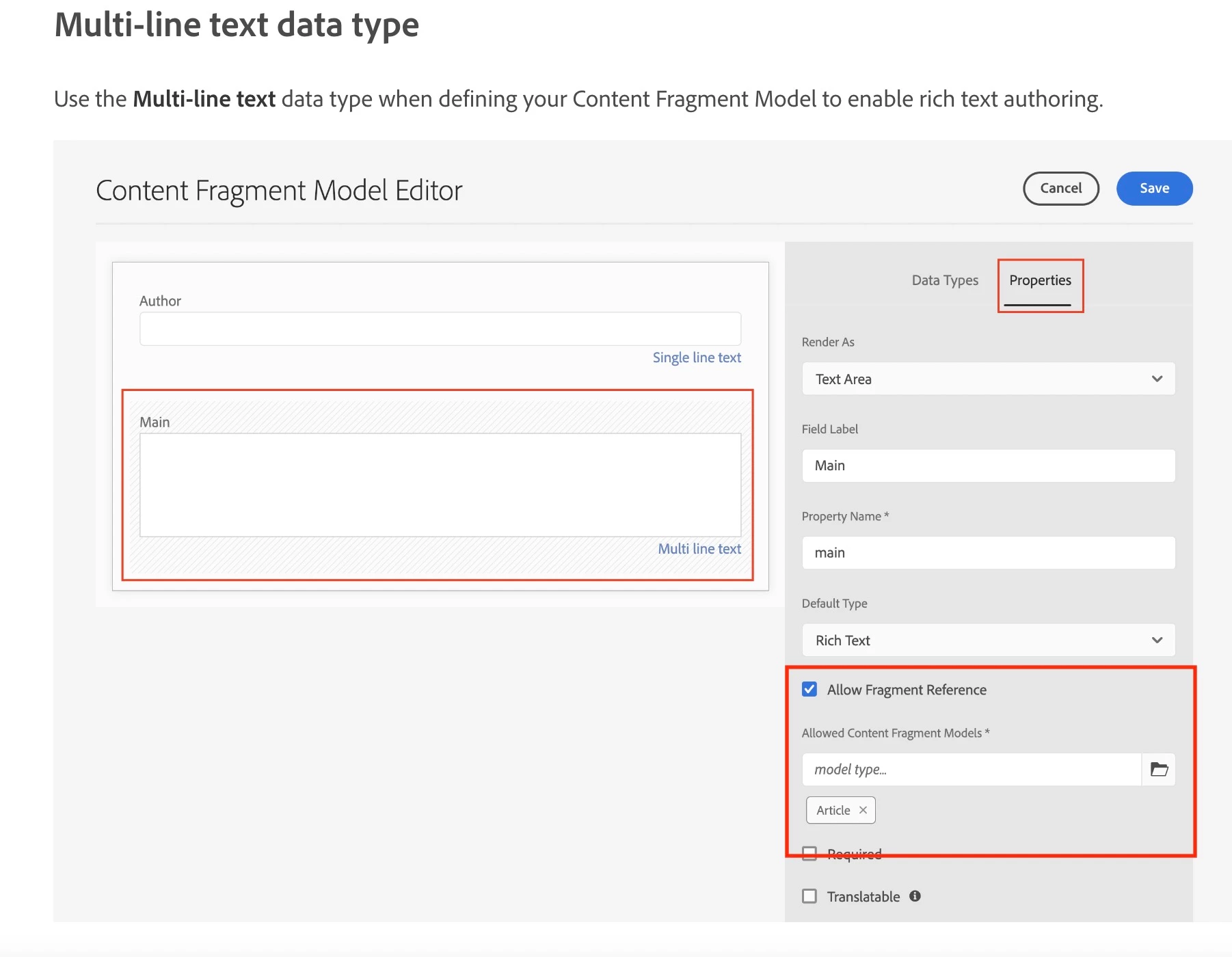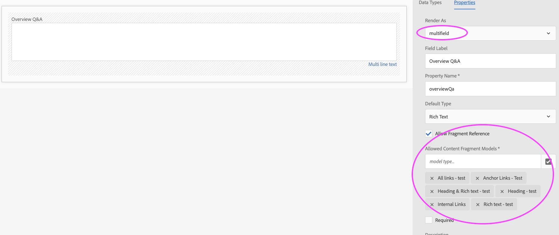 Multi field rich text not allowing fragment reference