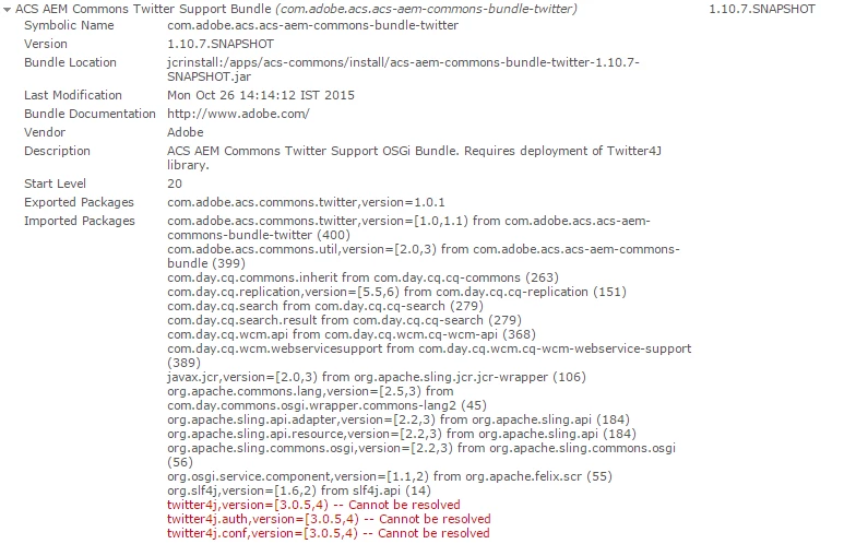 Here an example how I added the twitter4j in the <Export-Package> element.