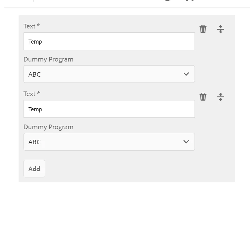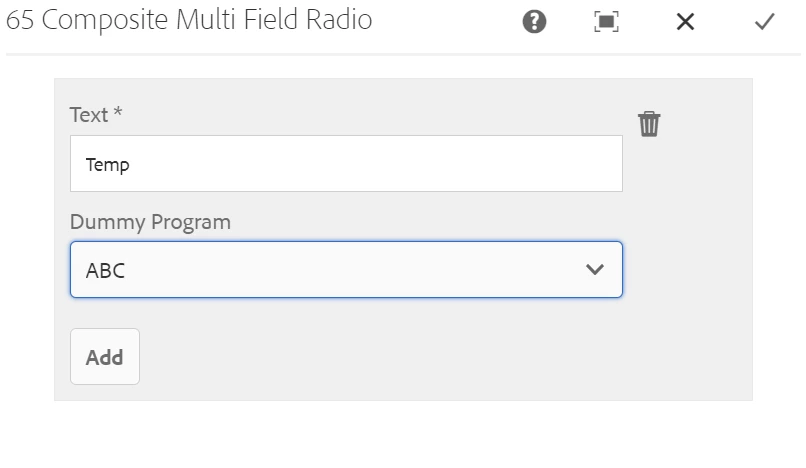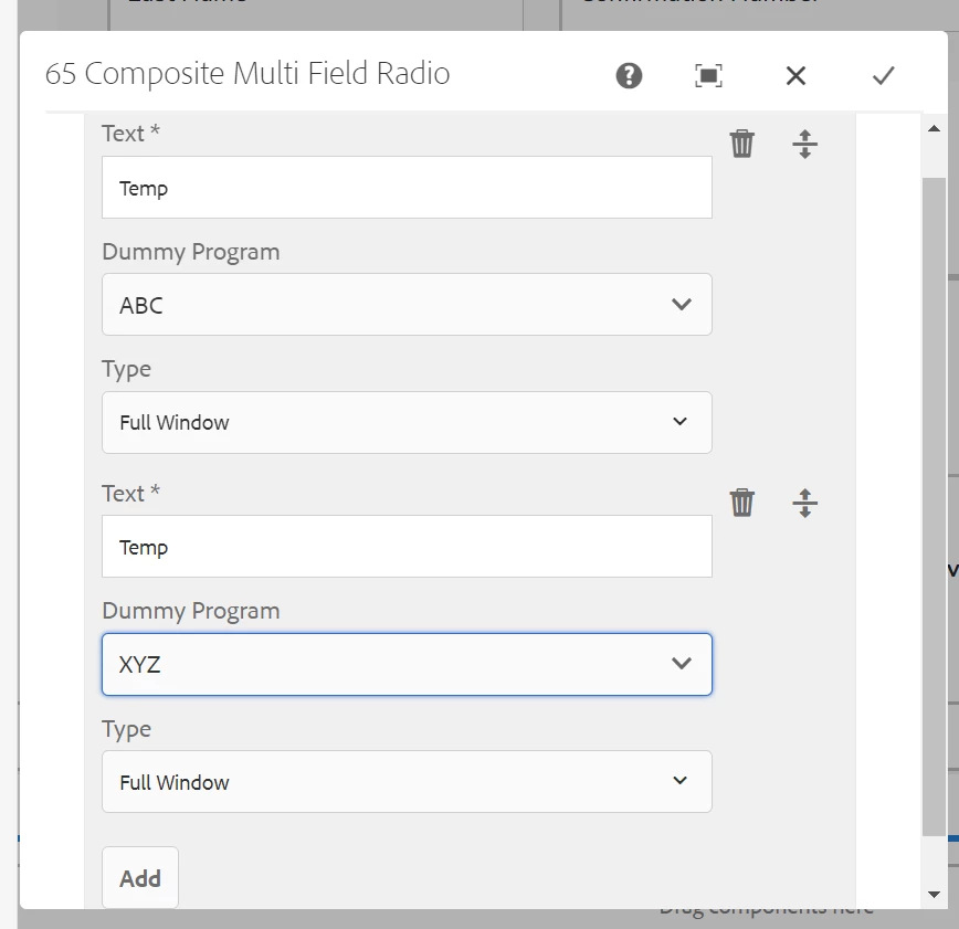 to add the new multifield in that I will select XYZ dropdown so in that case dropdownProgram Dropdown is visble.