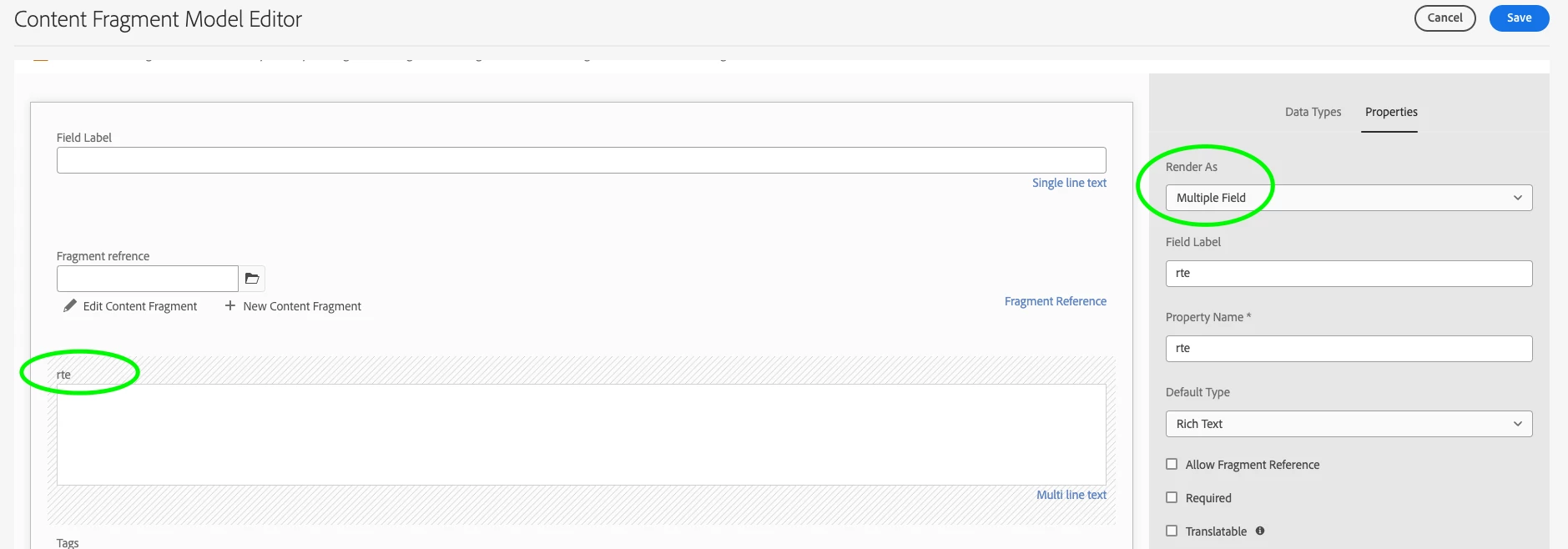 Multifield RTE on Content fragment- AEMasCS